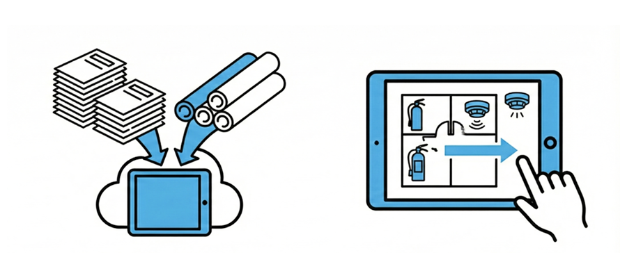 - 図面も設備情報も、すべてタブレットに集約